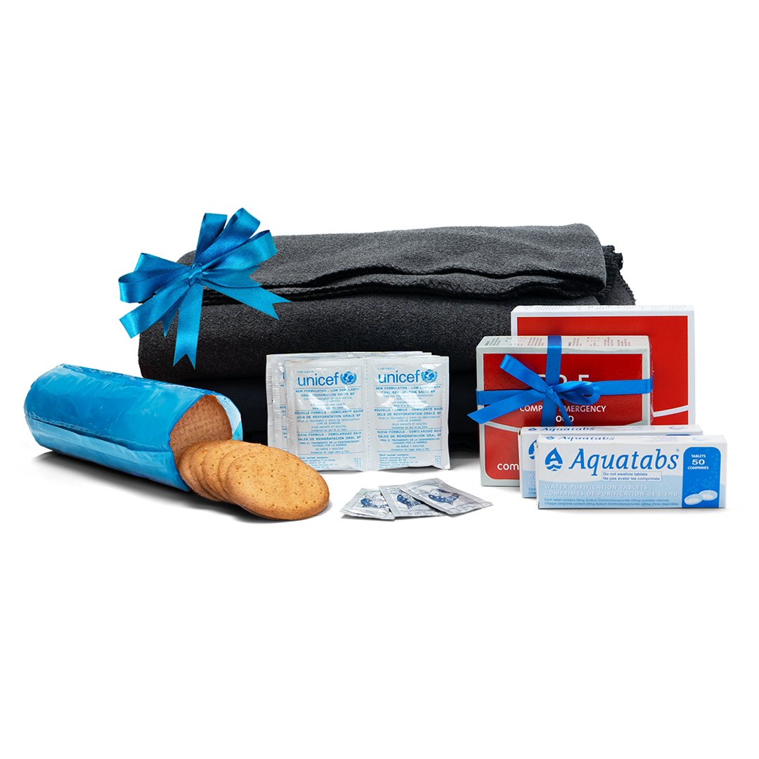 Pomozte dětem v krizových oblastech získat výživu a čistou vodu! Tento balíček obsahuje teplou přikrývku, 100 g sušenek, 10 sáčků vysokovýživového prášku, 500 g výživových tyčinek a 100 tablet na čištění vody. Děti oslabené podvýživou jsou v krizích nejohroženější a mají vyšší riziko nemocí a parazitů. Díky této soupravě získávají nejen potřebné živiny, ale i bezpečnou pitnou vodu pro zdravý růst. Děkujeme, že pomáháte dětem přežít a prospívat!